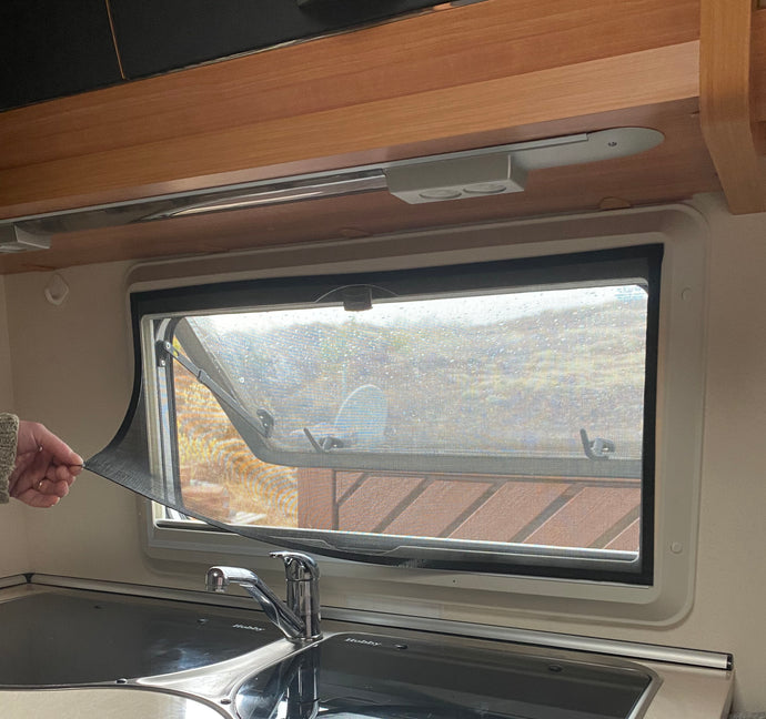 Hægt er að útbúa mjög þétta og góða lausn með lúsmýneti fyrir hjólhýsi með því að kaupa lúsmýnet í metratali og segulborða í metratali.